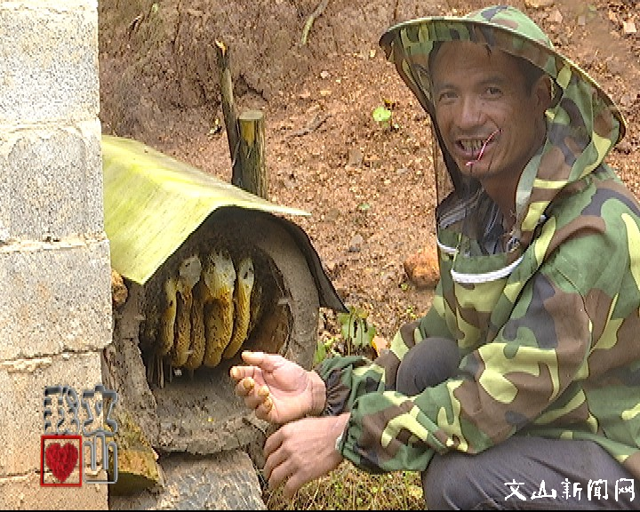 只见老杨打开其中一窝蜜蜂的蜂箱,细心观察蜂儿的生长情况和蜂蜜的产量。老杨还说,只有高度介入蜜蜂生活,才能够养好蜜蜂。这种峰子一般就是不能养的太密了,养过密了,蜜蜂分家的时候就会打架。或者在取糖的时候,蜜蜂就会争糖,就会打架。除了日常工作,包括繁殖蜂群、培养蜂王,给蜂群分家等,老杨每天早晨还要检查蜂箱,查看是否有马蜂、蛤蟆等天敌,特别是取蜜的时候,不能一次就把蜂蜜取完。