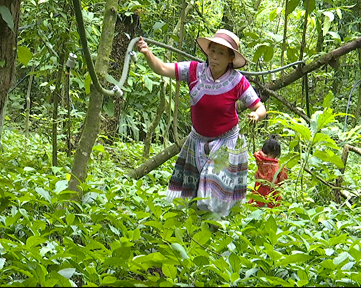 在文山市喜古乡古那冲村中药材种植基地,郁郁葱葱的树木散发着舒心的凉爽,阳光像一缕缕金色的细沙,穿过层层叠叠的枝叶,洒落在地上,林中的鸟叫声伴着潺潺的流水声在微风中久久地回荡着,山间的一百多种中药材各自吐露着自己的芳香。古那冲村民张正兵就通过林地入股+劳务入股的方式加入到合作社,从原来年收入1万元增加到现在年收入6万元。村民王自美家因家庭困难,通过劳务入股的方式来参与林下中药材种植,他们一家三口负责看管中药材种植基地,每天上山查看药材长势,每人每月1800元的基本工资,一年下来有4万多元的收入。