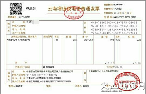 文网讯 3月1日上午7时30分,中国石油天然气股份有限公司文山销售分公司卧龙加油站成功为消费者开出首张成品油发票。