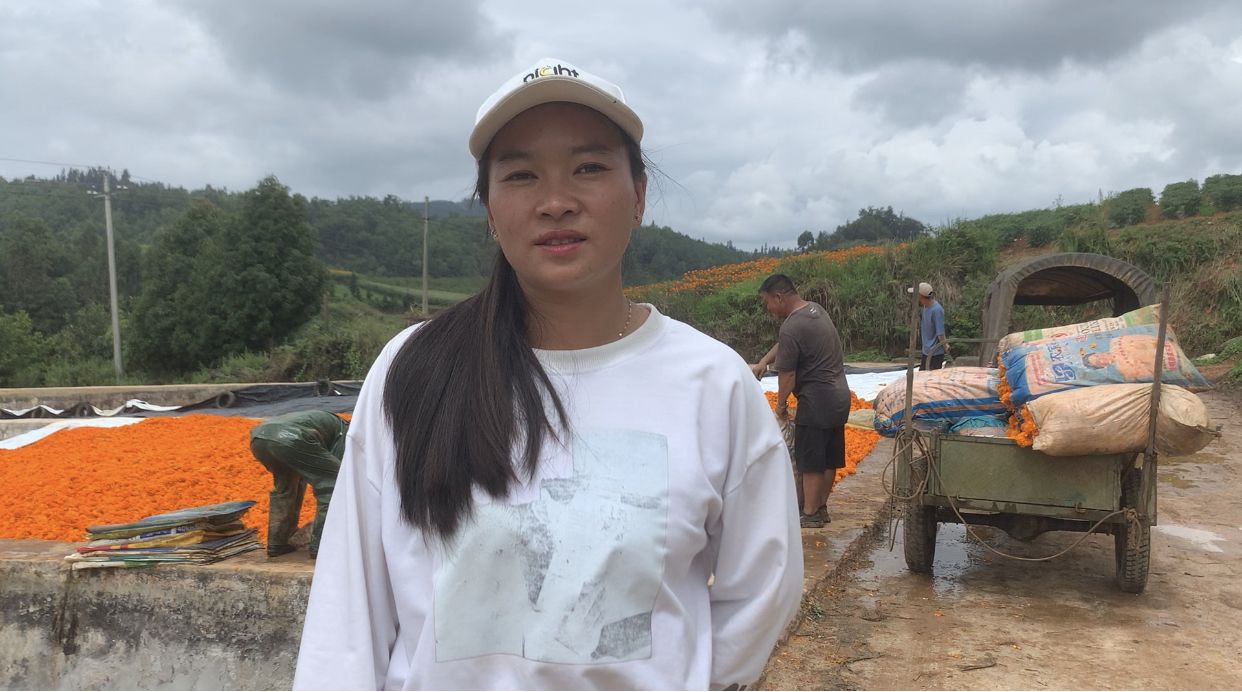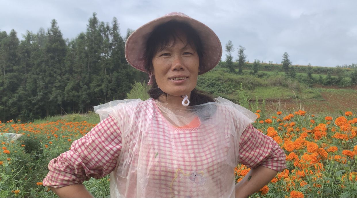 在平坝镇,金灿灿的万寿菊为绿油油的山川田野镶上了一层金边,花农们像一只只勤劳的蜜蜂,在花丛忙碌。正在地里忙活的罗家惠是平坝镇杜孟村种植万寿菊的“老手”,到目前为止,她已经收了第三拨花,已经卖了1万多元的花款。她告诉记者,5年前,正当她为种玉米还是种辣椒发愁时,平坝镇政府工作人员把万寿菊的“金种子”带到了她面前,工作人员告诉她,万寿菊将在文山形成产业链,包种包收,价格也有保障,绝对比种玉米要划算。抱着试试的心态她在第一年种了4亩,觉得收益不错的她不断扩大种植面积,到今年,已经发展到了11亩。