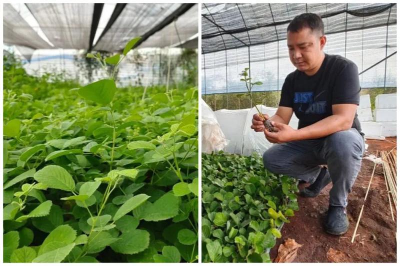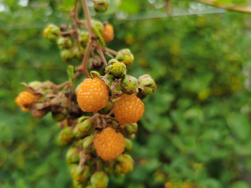 说干就干。回来后,纳正贤上网查阅了很多资料,又先后到江苏、山东等地进行考察,2015年,他正式着手驯化培育无刺黄泡、黑泡。其间,他高薪聘请研发人员用本土的野生黄泡、黑泡不断进行实验,驯化培育无刺种苗。5年时间里,纳正贤有着无数次的失败,培育的8万多株种苗只活下来132株,受到了家人、朋友以及股东的质疑。由于精神高度紧张,他曾一度患上重度抑郁,血压几度飙升,但却从未想过放弃。凭着这股不服输的劲,培育工作终于在2020年8月迎来转机,土壤、消毒、温度、湿度以及阳光、药水的比例等细节被一一攻克,他成功驯化培育出了脱毒无刺黄泡、黑泡种苗,存活率稳定在95%以上。