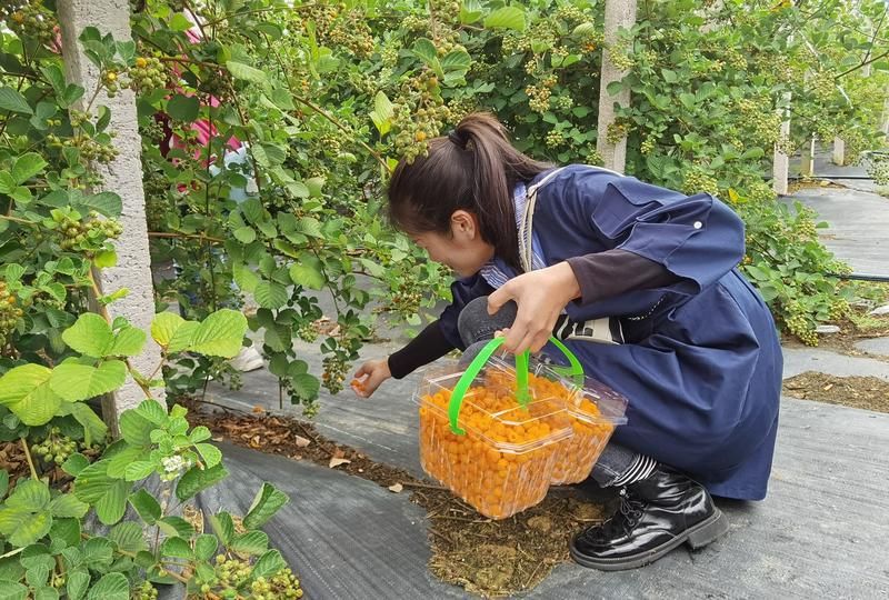 “这个黄泡和野生的比起来,汁水更多,颗粒更大,口感也好,真的是儿时的记忆,最关键的是没有刺,摘起来很方便。”市民马海雷听说这里有无刺黄泡,便约上几个好玩的朋友一起过来体验、尝鲜。