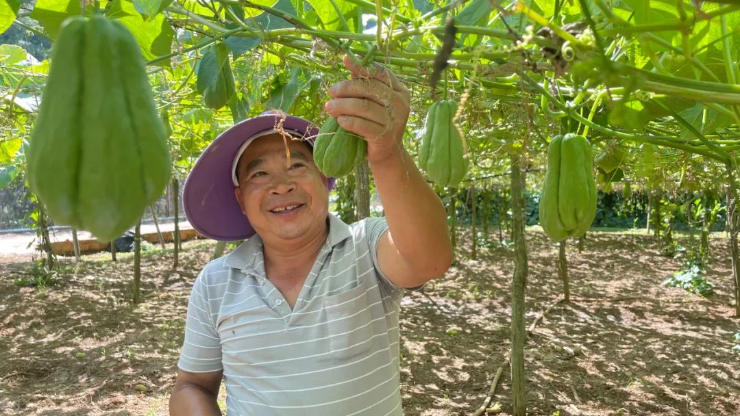 扎门村瓜农刘兴康告诉记者,他从之前的3亩多扩种至17亩多,虽然今年头年挂果量低,且受到天气的影响产量减少了些,但是价格较去年同期每市斤高出2角钱,总体收益还是较为乐观。同村村民王朝本家的佛手瓜早上刚采摘过,他正趁着下午的时间将叶子梳理一下。他说,家里就他和老伴,栽种佛手瓜已经10多年,由于劳动力有限,只栽种了3亩多,但种植佛手瓜不需要多少技术含量,两老目前已售卖1万多斤,收益1万多元。