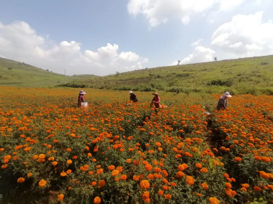 文山立达尔生物科技有限公司采取“订单发展”的经营模式,在文山市累计发展万寿菊种植面积6.4万亩,鲜花产量预计达12.8万吨,实现销售收入16560万元,累计带动农户20700户,户均增收8000元。每年收购、加工季节,工厂还能带动当地农户临时就业160人。