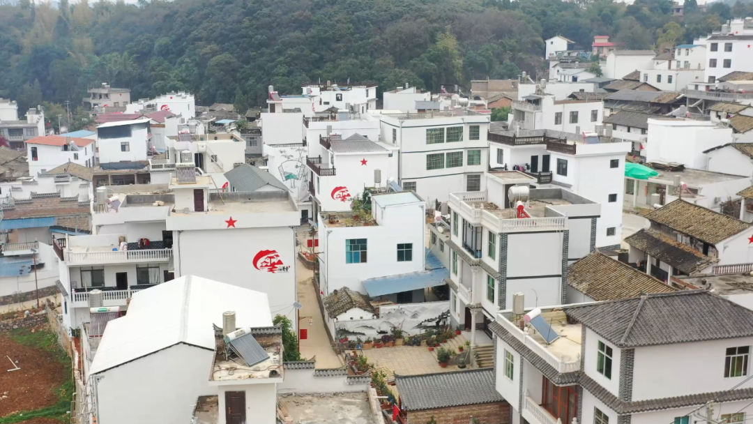 改造后的洒戛竜村家家户户房前飘扬的红旗和白墙上的红色徽标迸发出勃勃生机。