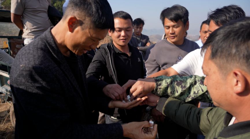 近日,庄子田居民小组的荒山上热闹不已,每家每户的代表聚在一起,为今年集体栽种1600亩的仙人掌地块进行网格划分,通过将地块编号后由8个组的组长随机抽签,定下各组栽种的地块位置。