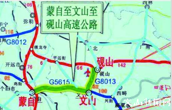 【链接】文山段:过老回龙→马塘→三角塘(文山城北)→盘龙→砚山城北→与广昆高速砚山至平远段交叉→终点与规划的丘北砚山高速(炭房收费站)相接→接入广昆高速。