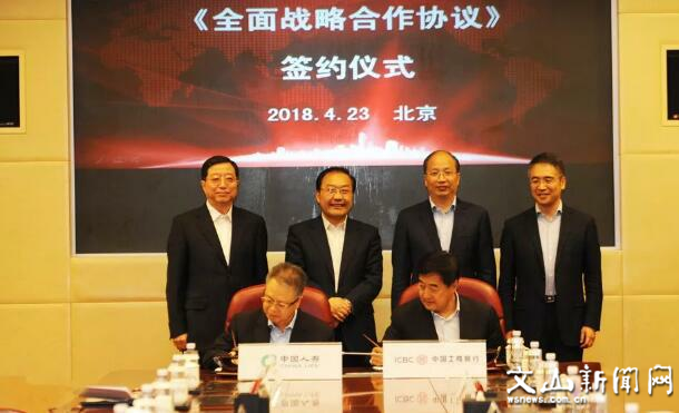 文山市新闻网讯 近日,中国人寿与中国工商银行在北京举行全面合作协议签约仪式。中国人寿保险(集团)公司董事长杨明生、总裁袁长清、副总裁刘慧敏,中国工商银行股份有限公司董事长易会满、行长谷澍、副行长张红力出席签约仪式。刘慧敏副总裁与张红力副行长代表双方签署了全面合作协议。