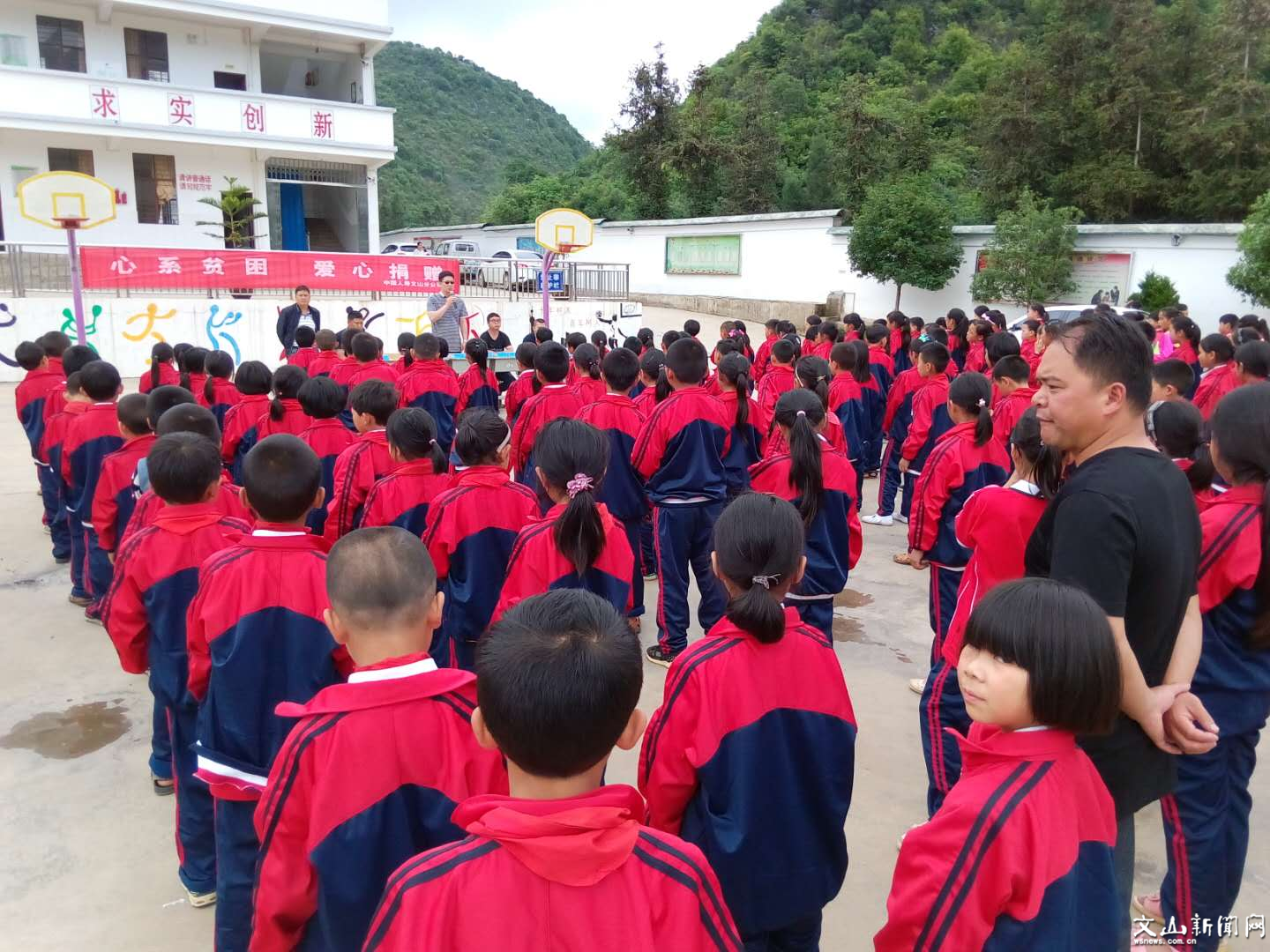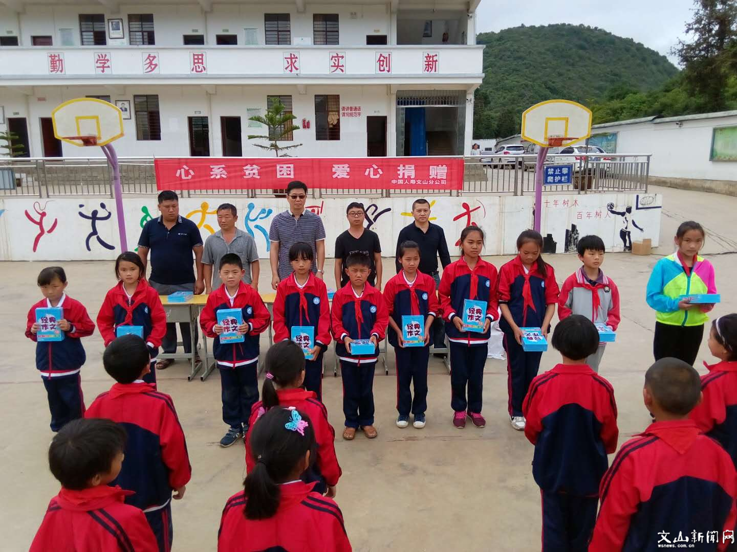文山市新闻网讯 “六一”来临之际,中国人寿文山分公司领导带着公司对挂钩点的关心和对孩子们的关爱,于5月28日驱车来到西洒镇老塘地村委凹塘寨小学,向全校师生表示节日的问候,并向学校捐赠了学生学习用具和辅导书籍。