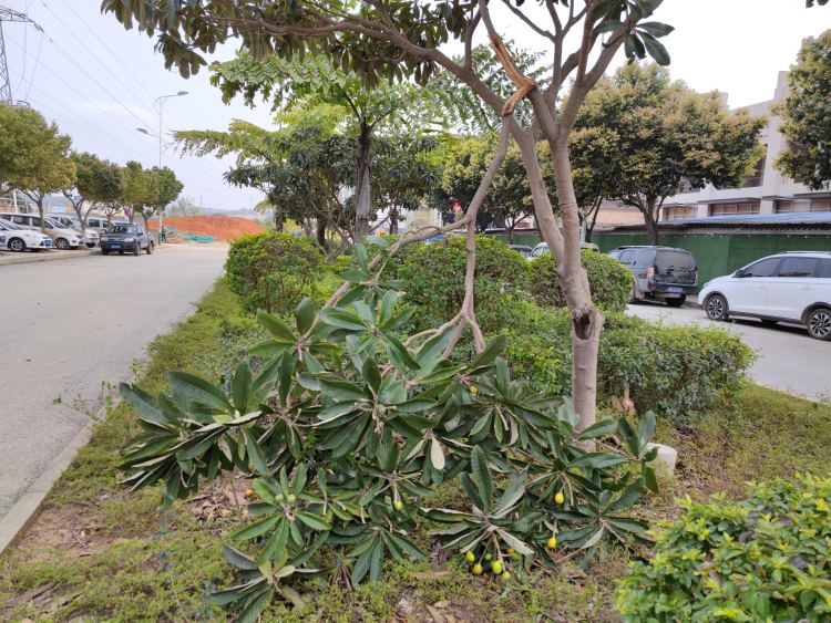 绿化带上的枇杷却
