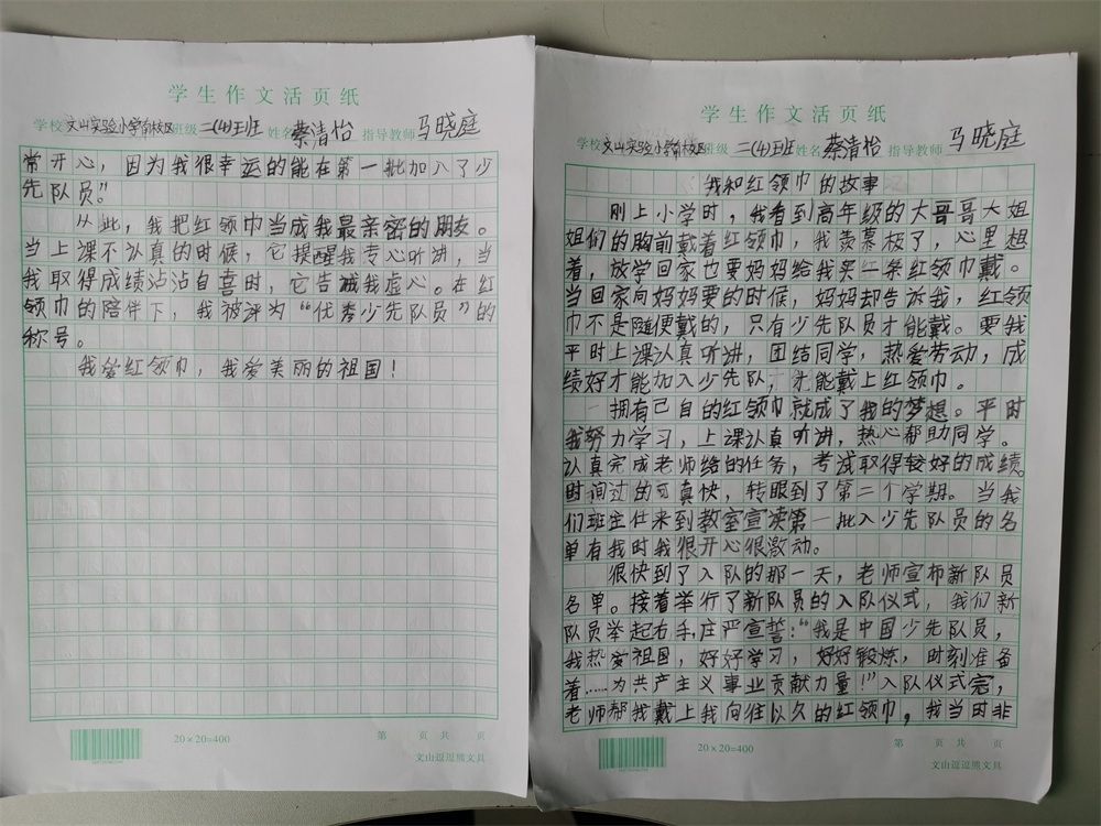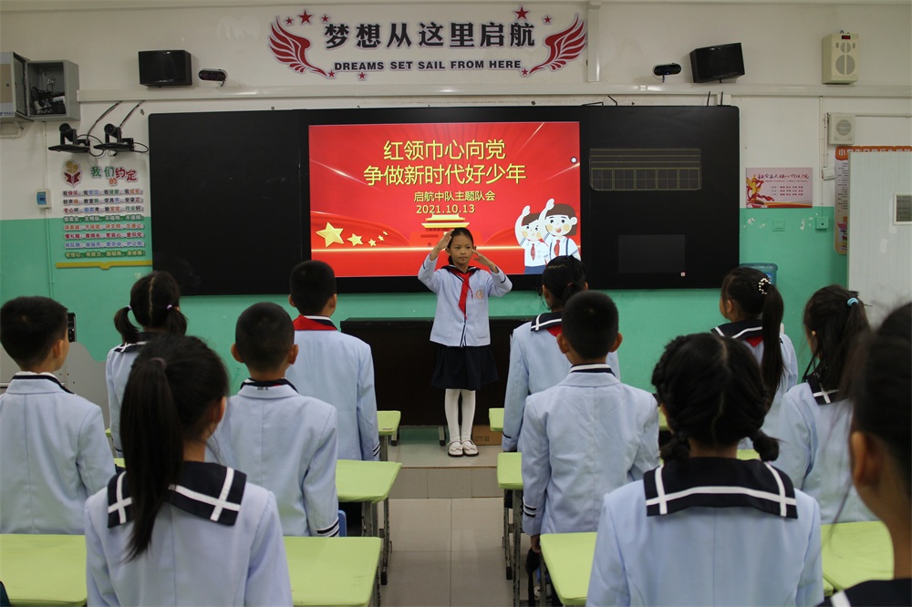 文网讯 10月13日,文山实验小学开展了“红领巾心向党,争做新时代好队员”主题活动。通过“学习中国少年先锋队的历史”“我和队旗合个影”“高唱队歌”“我和红领巾的故事”、观看“请党放心 强国有我”主题云队课等形式,引导少先队员以实际行动,践行“请党放心,强国有我”的铮铮誓言,进一步增强了少先队员的光荣感和使命感。 边疆少年心向党——我会高声唱队歌 10月13日一大早,嘹亮的队歌就在各中队唱响,少先队员们面向火红的队旗,伴随着激昂的旋律齐唱《我们是共产主义接班人》。星星火炬闪耀着耀眼的光芒,少先队员们脸上洋溢着自豪与幸福的微笑。 边疆少年心向党——我与队旗合个影 队员们热情高涨,争相与队旗合影,积极表达热爱祖国、热爱少先队之情。一个个朝气的面孔,一张张微笑的脸庞,在队旗下定格、绽放。他们用最简单、质朴的肢体语言为少先队献礼,为“红领巾”歌唱。相信,当他们与队旗合影时,已经默默地许下心愿,立志努力学习知识,练就过硬的本领,为队旗添彩,为祖国争光! 边疆少年心向党——我与队旗合个影 少先队活动课上,各中队中队辅导员带领少先队员回顾了少先队72年的光荣历程,并重温了入队誓词,帮助少先队员了解队史、熟知队章,进行了“敬队礼、戴红领巾、唱队歌”等竞赛活动。少先队员们深刻认识到:我国现代化建设的巨大成就都是在党的领导下取得的,增进少先队员对党、团组织的认知和向往。一年级的老师也对一年级的新生进行了队前教育。 边疆少年心向党——我与红领巾的故事 《我和爸爸的红领巾故事》 一个个真挚而动人的故事,回顾了加入少先队以来的点点滴滴,表达了他们澎湃的心情,增强了光荣感、自豪感和组织归属感,激发了队员们热爱祖国的浓浓情愫,展现了少年儿童振兴中华的伟大理想和坚定信心。 有一种颜色,飘扬在心中永不褪色,那是红领巾的颜色;有一种光荣,令人激动不已,那是戴上红领巾的光荣。一系列的活动让全体少先队员受到了深深的教育,贯彻落实了习近平总书记“用实际行动把红色基因一代代传下去”,“从小事做起,从身边做起,努力争做新时代的好队员”的要求和勉励,引导队员们听党话、跟党走,从小学习做人、从小学习立志、从小学习创造,努力成长为担当民族复兴大任的时代新人。 相信文山实验小学的少先队员定能不负时代重任,感恩幸福生活,勇担强国使命,努力成长为能够担当民族复兴大任的时代新人,用实际行动践行“请党放心 强国有我”的誓言! (文:姜金岑 杨媛 图:罗菲 徐红茜) (编辑:徐珺 排版:张振飞 审核:李云淑)