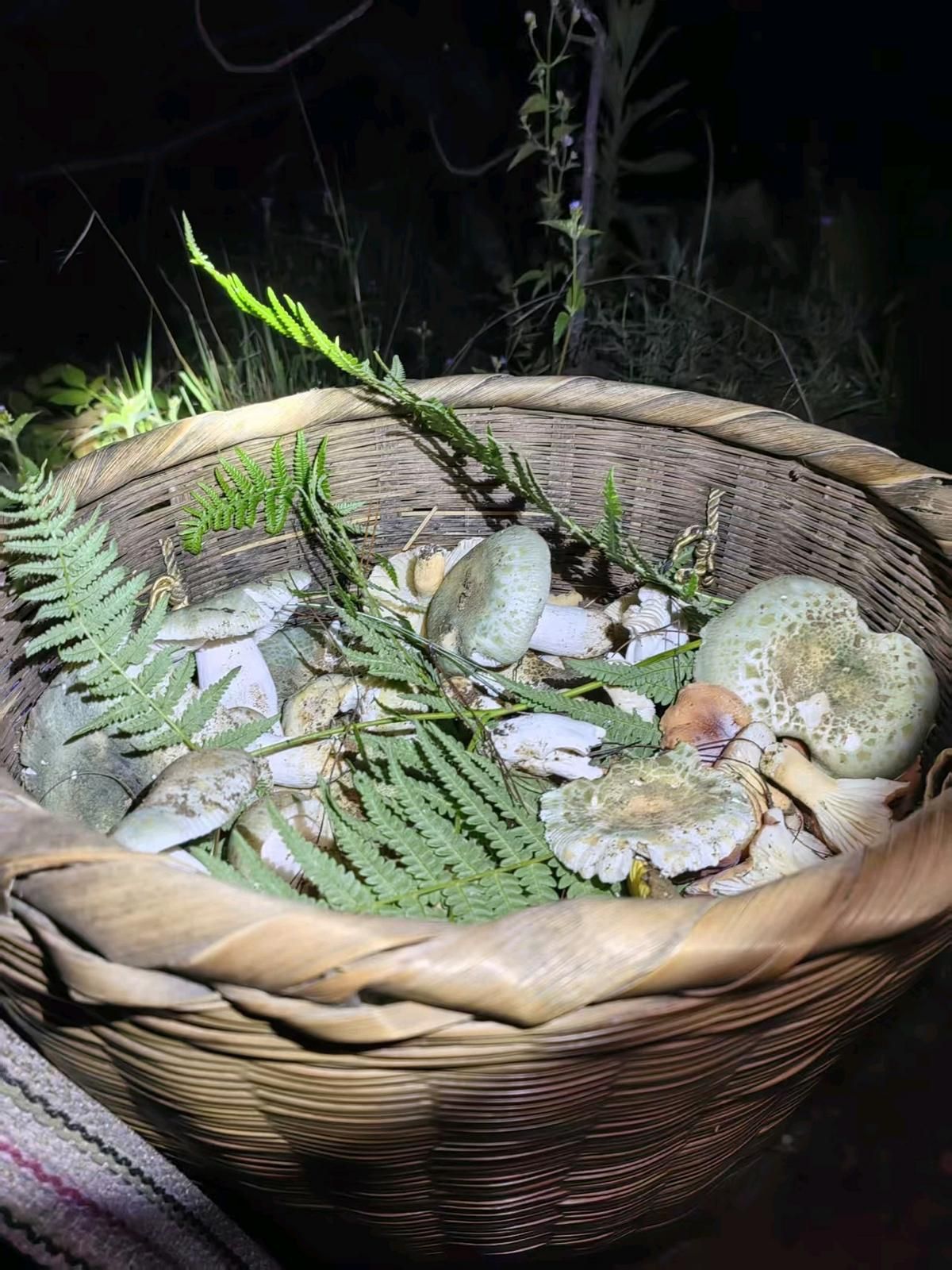 清晨,走进山林里,吸收了阳光雨露的青头菌、奶浆菌、鸡枞菌、牛肝菌、见手青一朵朵、一窝窝,像赶集似的钻出泥土和落叶,呼吸起山里的清新空气。尽管入秋后早晚变凉,村民对捡菌依然热情似火。夜幕还没退,一束束手电筒光已在林间穿梭;太阳才出来,一箩箩挂着露珠的菌子伴着欢笑涌向村头。