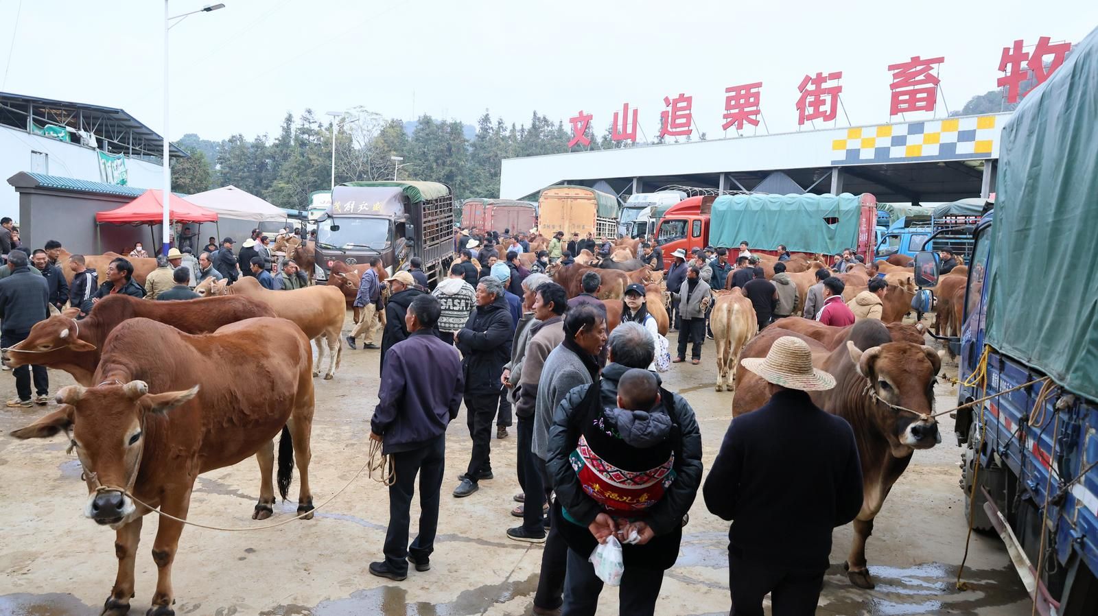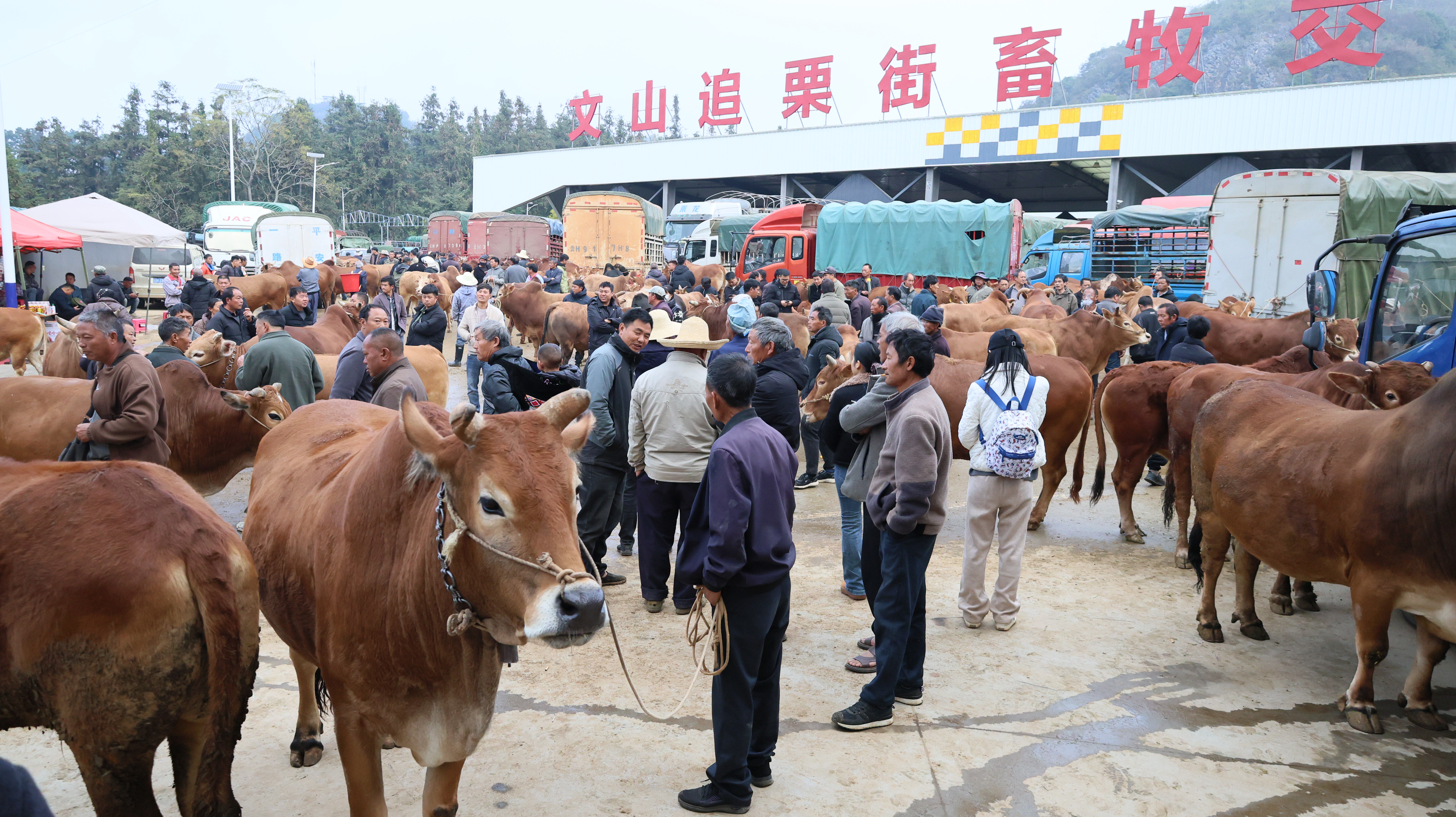 文山追栗街畜牧交易市场是全州最大的“牛市”,自2023年12月开市以来,这个占地25.02亩的“牛市”,每天能容纳800—900头大牲畜交易,牛市投入使用以来,每到交易街天就热闹非凡,为当地养殖户提供了交易的平台,让追栗街镇从“养牛大镇”变成“肉牛集散地”,解决了养殖户“卖牛难、卖不上价”的问题,带动形成了以养殖区为核心的“种、养、产、销”为一体的生态循环农业绿色产业发展,更好地促进群众增收。