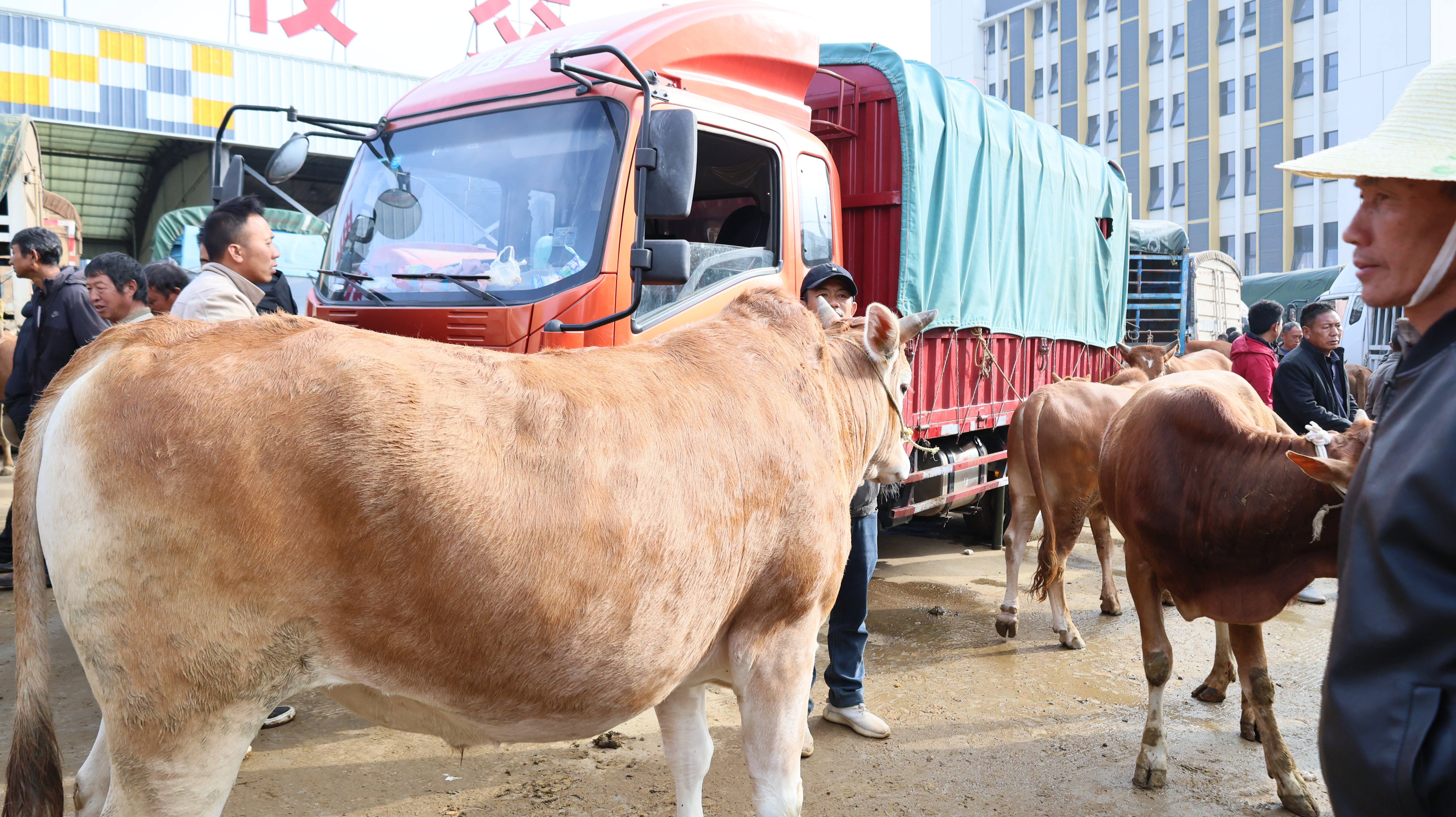 每周四的“赶集日”,追栗街畜牧交易市场都格外热闹,养殖户们早早牵着牛在交易区来回踱步,来自文山、红河等地的客商穿梭其中,看牛、议价、成交,一辆辆货车载着牛群驶向各地。“价格再加点,我家这头牛品相好”追栗街镇大兴寨村委会的养殖户张树金早早将自家的牛牵到市场,自从这个市场建好之后,家里的牛只要出售他都会拉到市场看看行情。