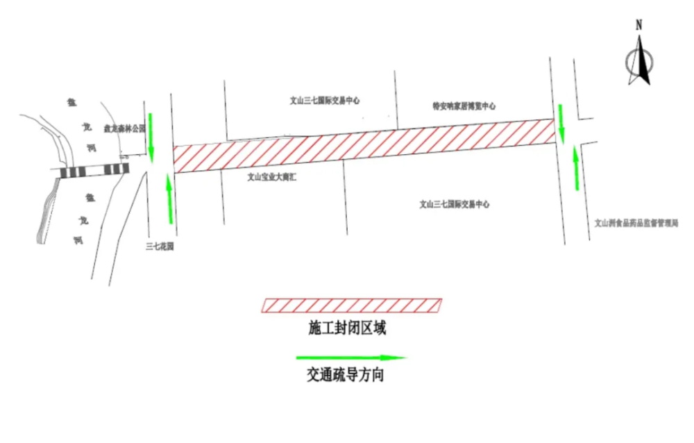 文网讯 近日,文山市住房和城乡建设局发布通告,将对文山城内3个路段封闭施工,实施雨污分流改造工程,过往车辆请注意绕行。 为切实解决好因雨污混流导致生活污水排入盘龙河,造成盘龙河受到严重污染的问题,文山市盘龙河推进流域综合治理指挥部拟对部分雨污混流严重的路段进行改造。为保障群众的生命财产安全及工程顺利施工,将对以下路段进行封闭施工: 一、特安呐家居博览中心至质量技术监督综合检测中心门前道路(半幅封闭),封闭时间为2021年5月27日—7月28日,共60天; 二、三七市场北一门至泰康西路路口道路(全幅封闭),封闭时间为2021年5月27—7月28日,共60天; 三、三七专家楼至盘龙河道路(半幅封闭),封闭时间为2021年5月27—8月7日,共70天。 过往这些路段的市民 请按照下图指示绕行 ↓↓↓ 特安呐家居博览中心 至技术监督综合检测中心门前道路 三七专家楼至盘龙河道路 三七市场北一门至泰康西路路口道路 (文山住房和城乡建设局) (编辑:郭韦 排版:龙俊贤 审核:李云淑)