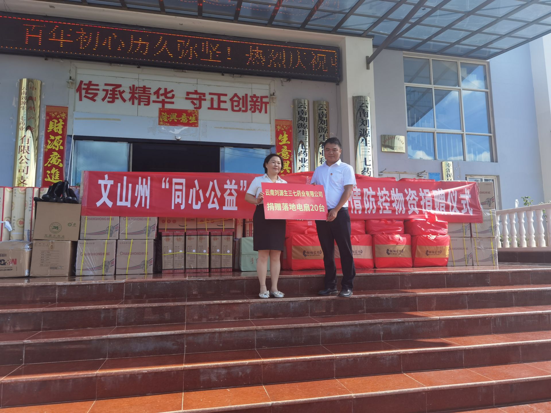 文网讯 随着当前疫情形势的严峻,文山边境线疫情防控压力剧增,防疫物资也开始紧缺。文山州、市工商联高度关注疫情防控工作,及时组织企业进行防疫物资捐赠,文山市多家企业在较短时间内积极响应,认捐风扇、床铺等多项物资,并于7月12日上午,在文山三七产业园区云南刘源生三七药业有限公司举行文山州“同心公益”行动边境疫情防控物资捐赠仪式,认捐物资用于麻栗坡县天保村委会疫情防控一线。
