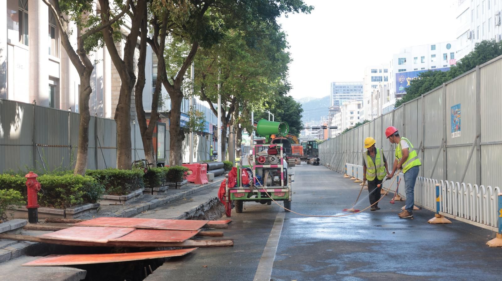文山州礼光道路桥梁工程有限公司现场负责人王发顺说:“从9月6日开始到现在,建禾西路已经完成200米的管道安装,目前在回填夯实阶段,回填夯实以后对路面混凝土进行恢复就可以撤出围挡。建和西路、瑞禾路预计分别在11月15日和11月30日左右完成施工。”