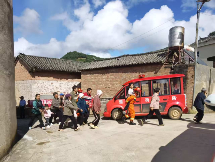 随着锣声响起,预警信号迅速传遍村寨,应急疏散程序立即。在逃生过程中,重点关注老人、儿童等特殊群体,采取搀扶、背负等方式协助转移,确保不漏一人、不落一步。整个流程衔接紧密、响应迅速、操作规范,达到了“以练促防、以练提能”的预期目标。