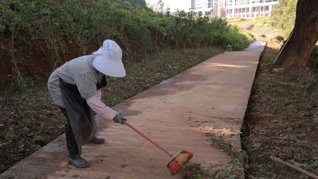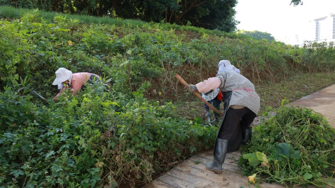 位于城南的祥民社区,其辖区内的盘龙河栈道不仅覆盖淤泥,两侧滋生的杂草也在风雨后显得格外凌乱,影响了整体环境。社区在洪水退后立即行动,聘请了数名临时工人,使用镰刀、锄头等工具对栈道两侧及绿化带内的过高过密杂草进行了集中割除。
