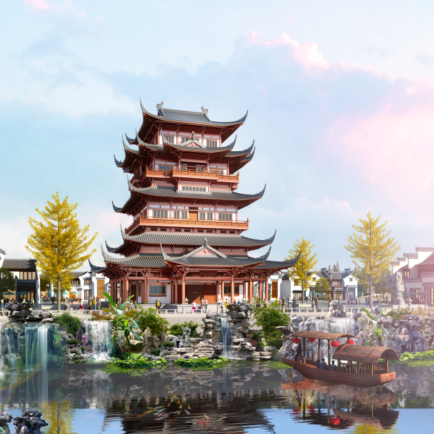 七都古镇一期建设项目用地为251亩,建设内容包含展示中心、七都牌坊、开化三七庄、威远楼、乐海飞花戏台等,计划于2024年中旬完成开街运营。