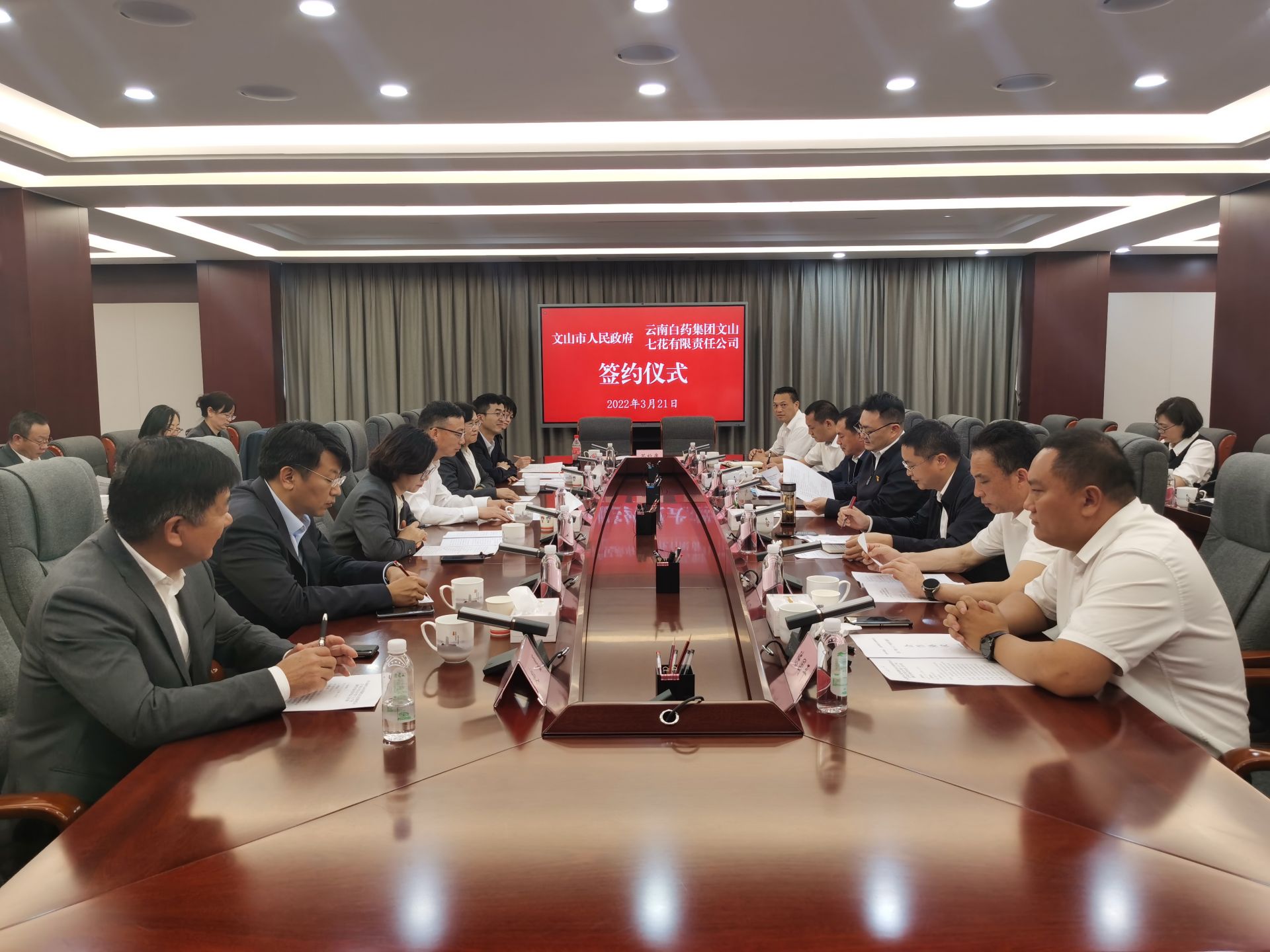 文网讯 3月21日下午,文山市与云南白药集团文山七花有限责任公司签订文山“数字三七”产业链开发建设合作协议,将信息技术植入三七产业,推动实现三七从种植到初级加工再到精深加工和销售全产业链发展,引领三七产业向数字化迈进,带动文山经济发展实现新突破,把文山打造成为名副其实的世界“三七之都”。