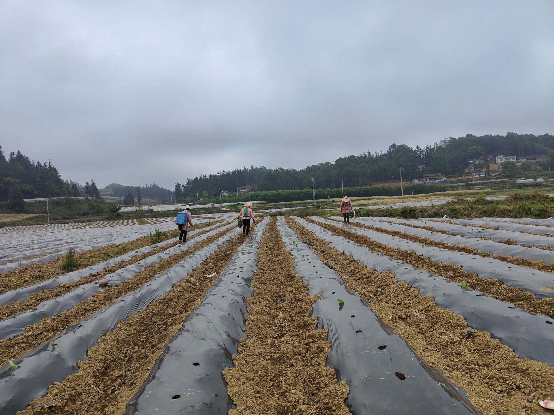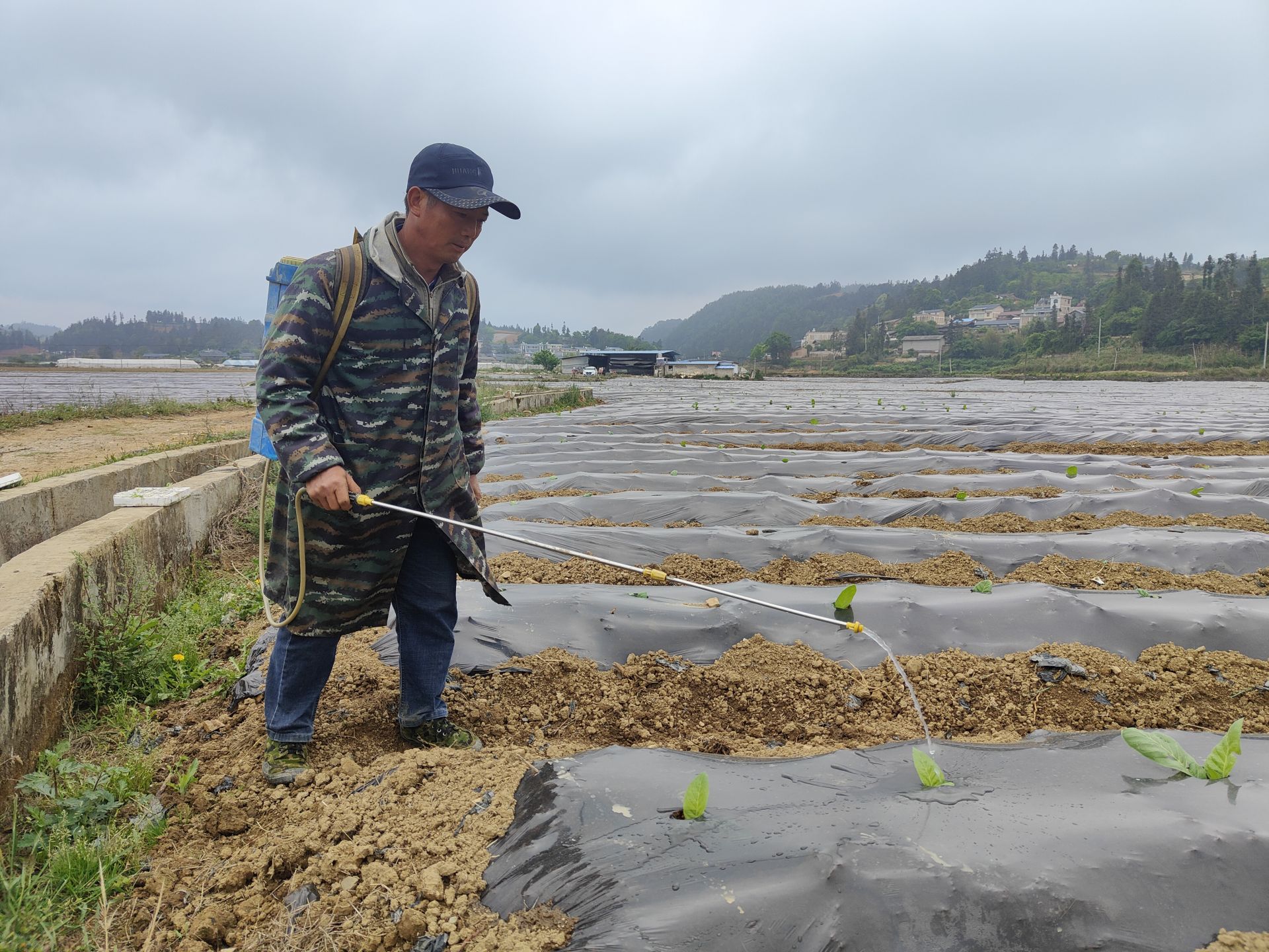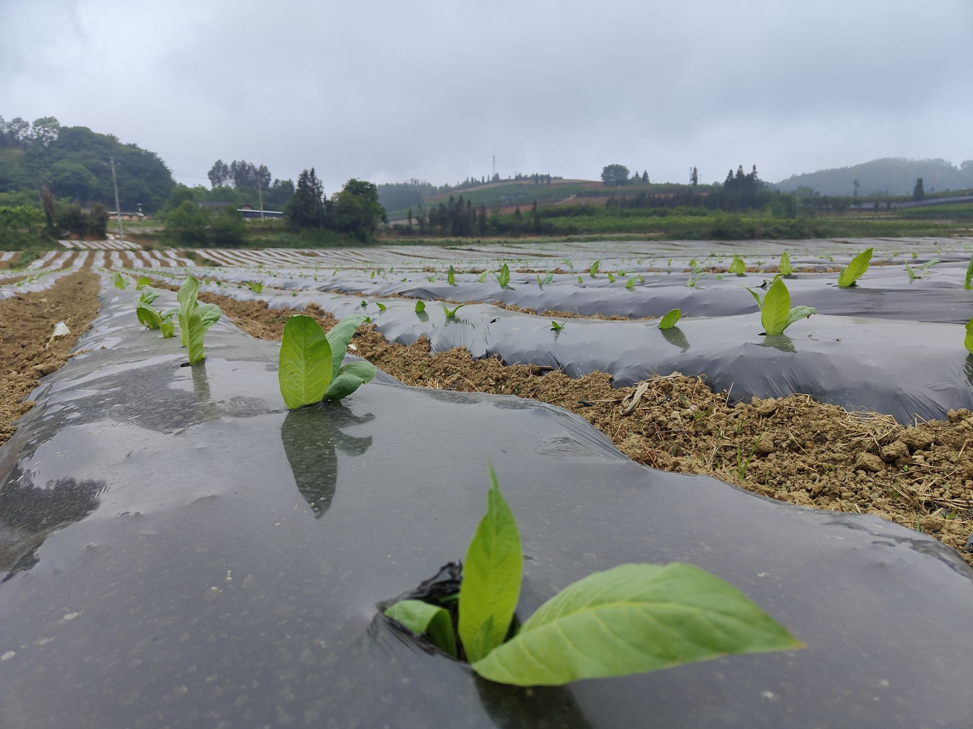 在平坝镇得白行政村得白村烤烟移栽现场,烟农们正忙着移栽烤烟,一株株嫩绿的烟苗在烟农手中翻转、落地,刚种下的新芽争相冒头,苍翠欲滴。移栽、施肥、盖膜、浇水,田间地头呈现出一片繁忙的景象。