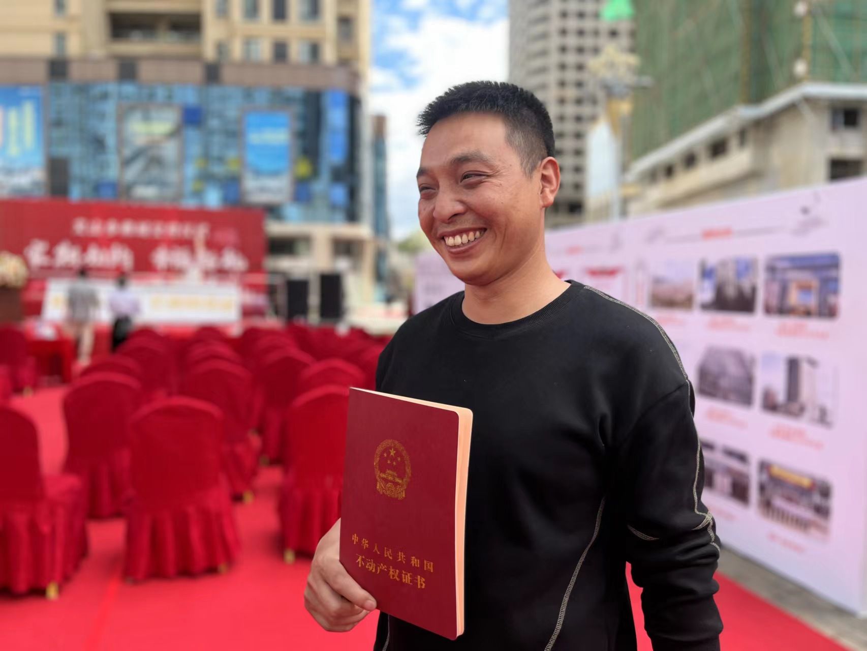 当天艳阳高照,许多市民和业主闻讯赶来现场,共同见证这一期待已久的时刻。“我等了10年,10年间眼瞅着施工断断续续,那叫一个闹心。现在终于可以住进自己的房子了,激动、兴奋,心情难以言表。”双手捧着不动产权证,业主陈老先生满脸是笑,抑制不住喜悦的心情。“9年前我们为了方便孩子读书,特意在这里买房,孩子都快毕业了,房子也没住上,这么多年都是在学校周边租房住。今天终于拿到钥匙拿到证,幸福来得有点迟,但是有家的感觉真好。”业主周先生笑着说。许多业主也纷纷向记者表示,这个楼盘烂尾多年,交付遥遥无期,大家焦虑无比,时常感觉无家可归。“直到2020年多弗集团向我们业主作出了承诺,今天兑现了,现在交房交证,压在心里的大石头终于落地了。”业主刘女士激动地说。