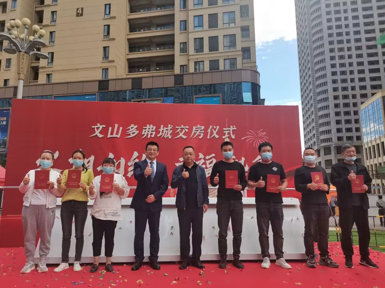 文网讯 10月23日,对于文山多弗城一期700余户业主来说,是个特别高兴的日子。这天,位于文山城大兴街的多弗城举行交房仪式,州、市相关部门负责人到场祝贺,并为业主代表发放首批不动产权证。至此,文山这个“烂尾”11年的楼盘,即日起陆续交房交证。