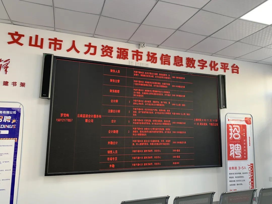 在位于金地广场旁的文山市开化街道人力资源(零工)市场一站式服务大厅,记者看到,工作人员正在将当天前来找工作的人员信息录入电脑进行分类。一旁的数字化信息平台实时更新跳转着各个用工企业的详细招聘信息,让需要找工作的人一目了然。