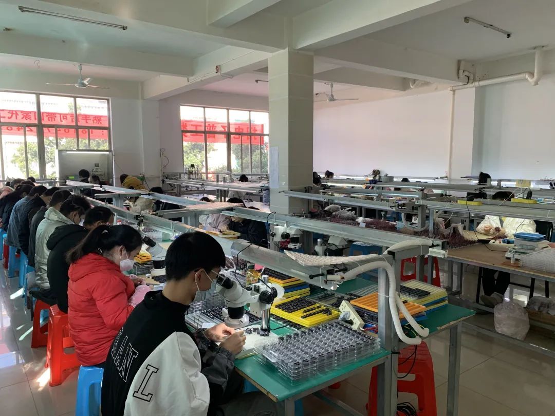 在位于卧龙街道的文山某电子科技有限公司的生产车间里,工人们正在各自生产线上忙碌着,零件线包、外观视检,大家各司其职,有条不紊地开展各项工作。