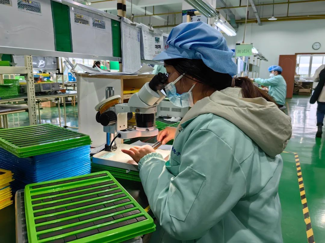 近日,记者来到文山某电子科技有限公司的生产车间看到,车间内整齐分布着多条生产线,工人正各司其职、紧张有序地开展绕线、镀锡、点胶、烘烤、测试等相关工序的工作。据该公司人事部经理莫有艺介绍,目前共有400名工人在正常开展生产工作。