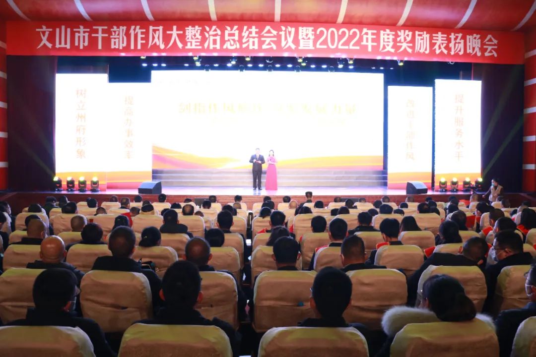 此次晚会共分为“作风之治”“文山之干”“榜样力量”三个篇章,晚会观看了作风大整治行动专题片——《剑指作风痼疾 凝聚发展力量》。2022年春节收假第一天,文山市召开了干部作风大整治和优化营商环境动员大会,以“文山之干”的革命性举措拉开了作风革命、效能革命的大幕。截至目前,全市共识别作风问题单位(集体)22个、个人553人(含处级干部6人、科级干部69人)。其中,给予提醒谈话教育274人,集中培训教育263人,作风大整治行动取得了明显成效。市委常委、市纪委书记、市监委主任刘先丹就《文山市推进干部作风整治常态化长效化实施方案》作说明,从2023年2月起转入常态化开展作风整治。