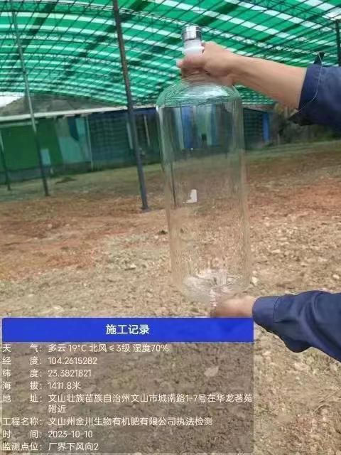 为全面检验整改成效,10月10日,文山州生态环境局文山分局委托云南环绿环境检测技术有限公司再次对金川公司厂界上风向和下风向4个检测点位以及警官小区、半山领秀小区、山水佳园小区、世外桃源小区4个敏感点位开展臭气、硫化氢、氨气取样监测。