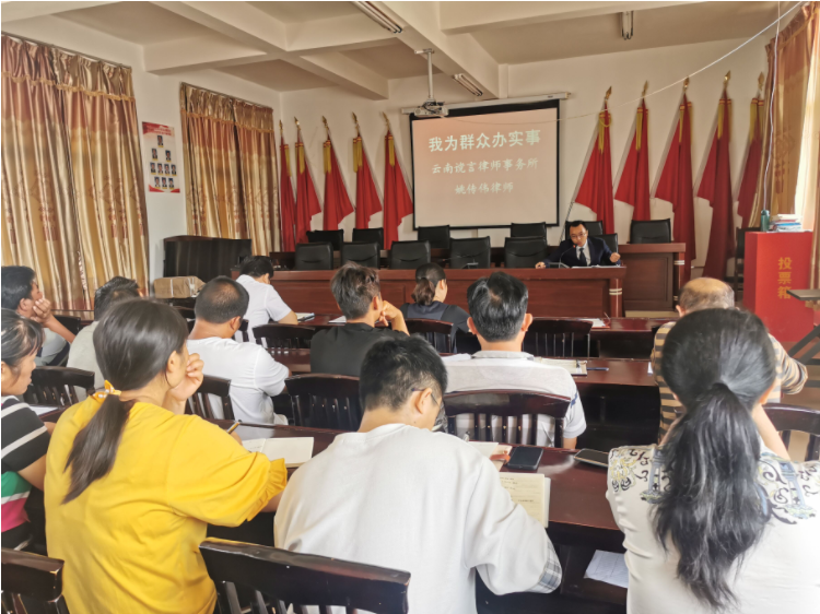 文山谠言律师事务所姚传伟律师,紧紧围绕山林地界争议问题、相邻土地和房屋排水问题、牛马等家禽家畜损坏财物问题、农村彩礼退还争议和离婚财产分割、赡养父母及分家过程中的矛盾、外嫁女儿参与分割财产和征地款、民间相互借贷、耕地租赁等老百姓身边矛盾纠纷易发多发的领域,从法律规定、现实操作两个不同的维度,结合所办理过的案例处置结果,分别做了深入细致的分析和讲解,帮助乡村组干部理清了在处理农村矛盾纠纷过程中面临的疑惑和思路。