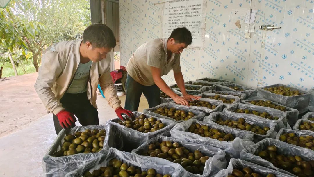 十几名工人正忙着采摘猕猴桃,技术员张国光将工人们采摘好的猕猴桃拉运至保鲜库外的仓储室,并按照大、中、小进行分类堆放。他说,从8月中旬以来,基地里的猕猴桃就陆续成熟了,采摘期可持续至12月。今年果子的品质很不错,价格也好,小果5~7元/斤,中果10元/斤,大果13~15元/斤。