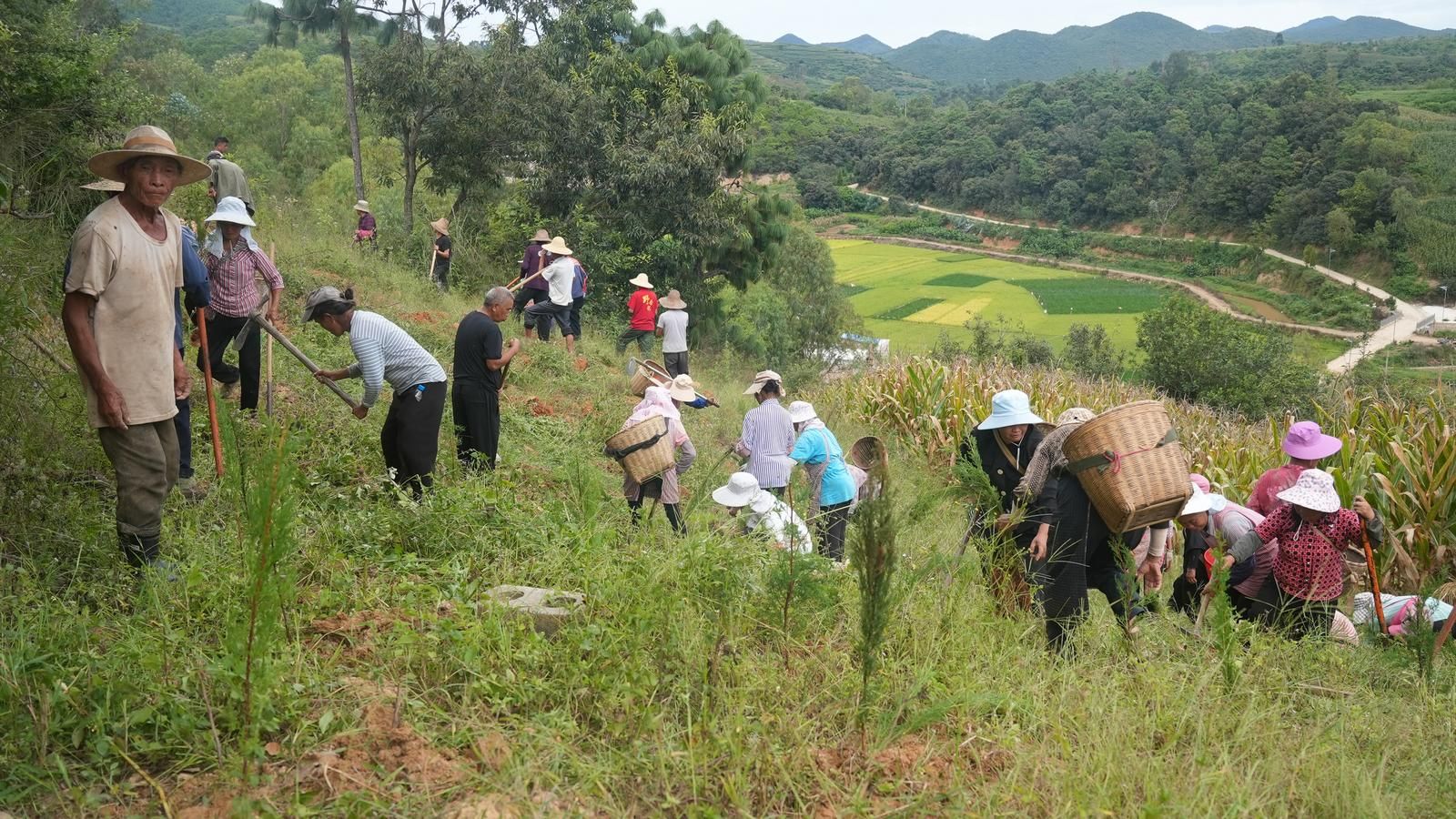 “国家帮加固了河堤,现在种树,以后水清岸绿的,我们村会越变越美。”9月13日,文山市秉烈乡新老龙村稻田金黄、群山叠翠,干部群众忙趁着秋收前在河堤、荒山上植树,干劲十足、热情似火。