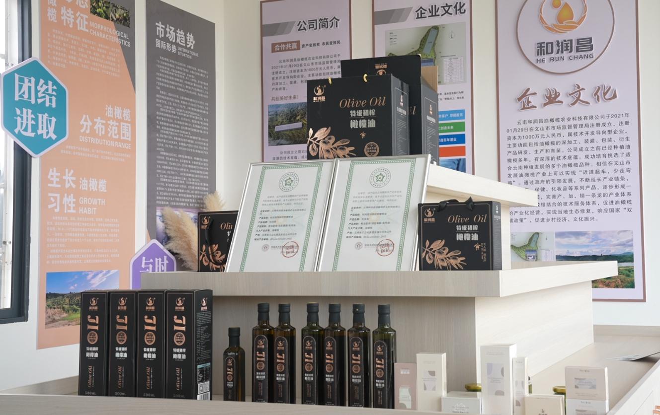 走进基地展示厅,门口是一大片整齐排列的油橄榄苗,展示厅摆满了用油橄榄果加工而成的橄榄油、化妆品。李崇建告诉记者,公司始终坚持自己选种、自己育苗,正在选育的品种有30多个。同时按照国际标准,认真把控鲜果采摘、运输、榨油各环节,以确保橄榄油品质。2024年4月,该公司生产的特级初榨橄榄油,还被中国乡村发展志愿服务促进会认定为“消费帮扶产品”。